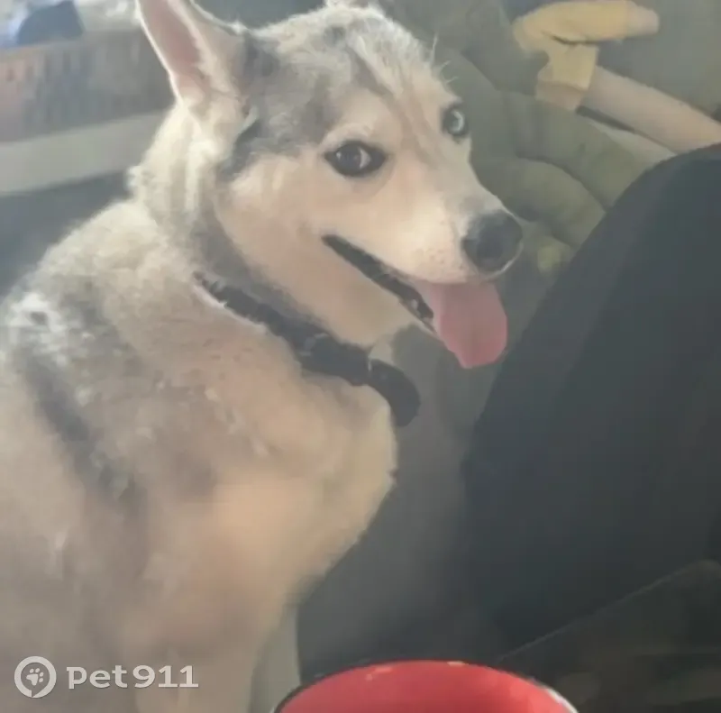 Глаза разного цвета голубой и коричневый , темный ошейник с металической табличкой и именем Лада, собака пропала ещё в ноябре месяце, на тот момент она была у другого человека , точный район пропажи не известен как и дата , о пропаже собаки узнали только сегодня 26.12.25,