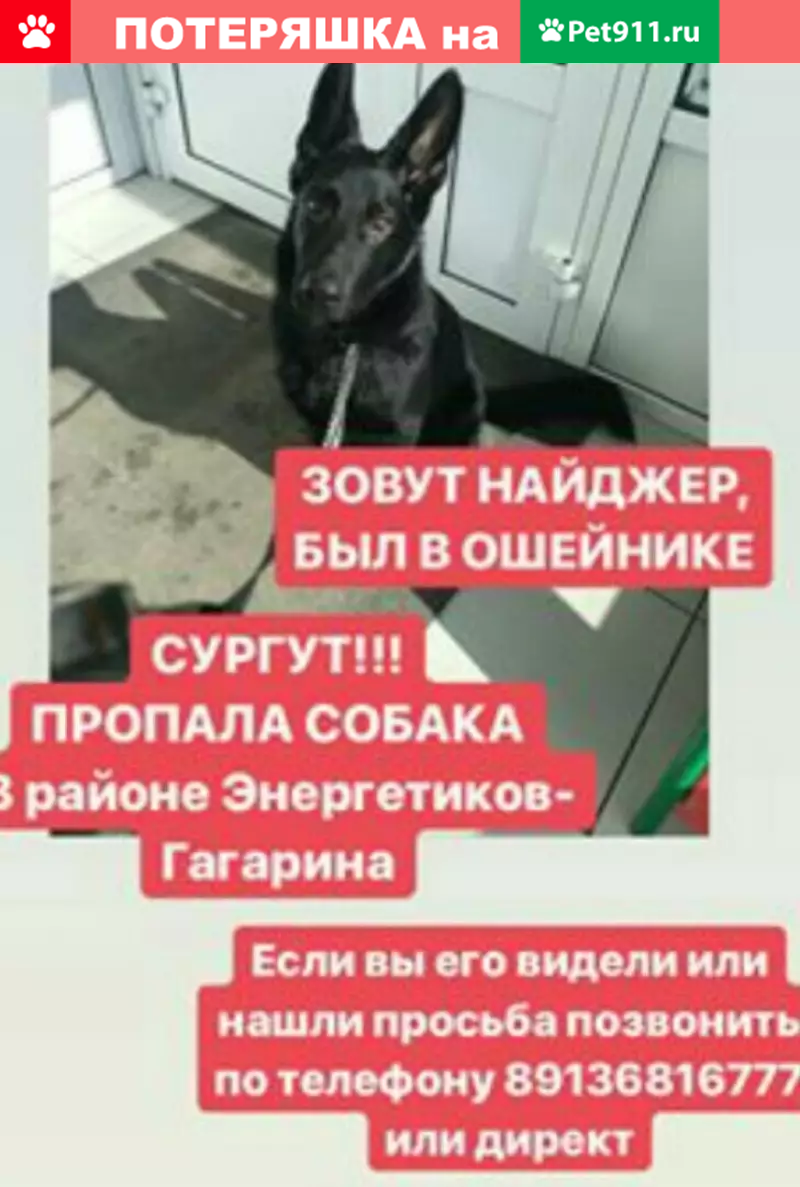 ОНИ ПОТЕРЯЛИСЬ! *** Потерялась собачка на территории Белого Яра или Барсово, зовут Нюша. Пожалуйста, придержите её, если увидите её. тел: Оля *** Потерялся пёс. Откликается на кличку Найджер. Был в ошейнике. Пропал на улице Энергетиков - Гагарина. тел:
