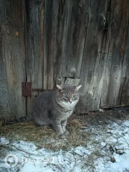 Взрослый. Серый, немного с полосками, глаза бирюзовые. Низ мордочки белый. Шерсть средней длины, не совсем гладкошёрстный, но и не длинношёрстный. Сейчас, скорее всего, худой. На шее слева и справа участки с более короткой шерстью после полученных в уличных драках травм и пролеченных абсцессов. Имеет доступ к улице. Ушёл в субботу 26 апреля в районе обеда и с тех пор не появлялся. Не кастрирован, поэтому мог "загулять", но в течение пары недель до и в день ухода не проявлял характерных признаков.