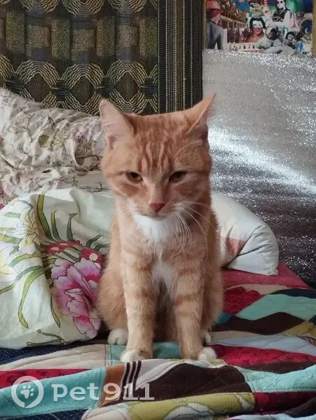Рыжий котик с белыми пятнами на груди, левой щечке и лапках. Кончик хвоста тоже белый. Миниатюрного телосложения, шерсть не длинная. Потерялся в районе стадиона Спартак, выскочил из шлейки.. Рыжик очень пугливый, к незнакомым людям не пойдет, поэтому лучше сразу звоните!