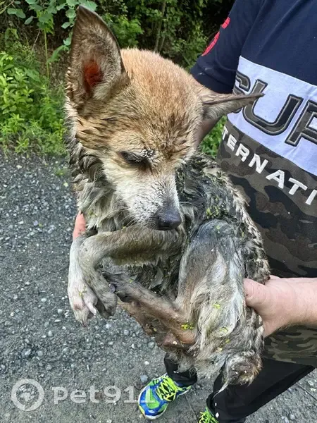 Маленькая, рыженькая собачка с купированным хвостом, в районе Плотины, рядом с насыпью в болотине была найдена собачка, отчаянно кричала, не могла выбраться из болота! Видно, что домашняя