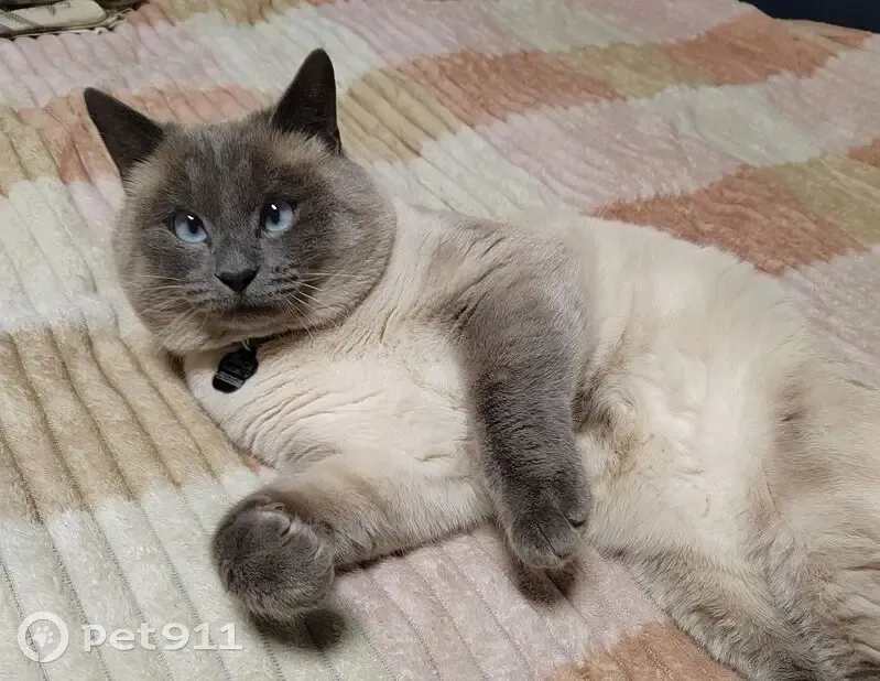 Мордочка серая, хвост серый, лапки серые. Сам молочно - серого окраса. На животе серое пятно. Тайской породы. Был в ошейнике серого цвета(от клещей) на ошейнике медальон с кличкой, адресом и номером телефона. 29.03.25 в 23:40 вышел гулять и не вернулся. Возможно вывезли на машине его. Нашедшего гарантируем вознаграждение!