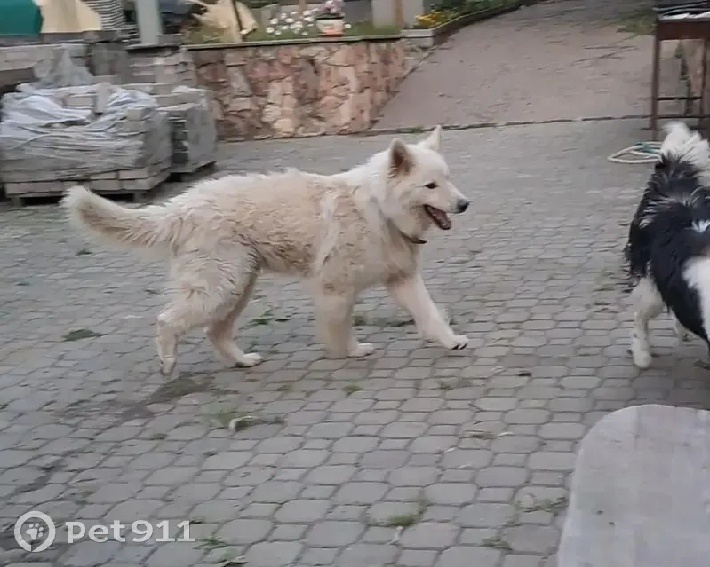 Белая Швейцарская овчарка , коричневый ошейник , собака в слабом состоянии, поранена, последний раз была замечена в Новоберезовском около Бургер Кинга