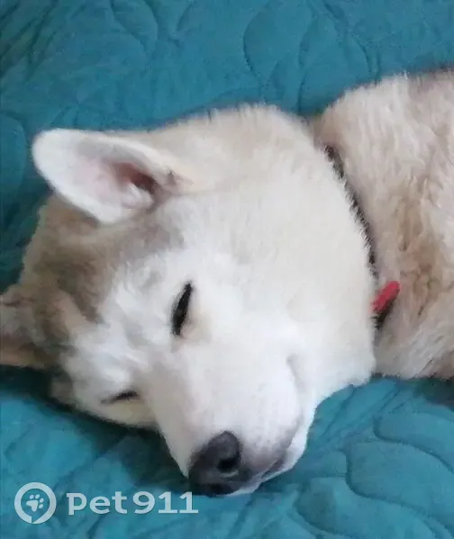 Серо белый окрас. Порода Сибирский хаски.Очень ласковая и добрая. На ней были одеты два ошейника. Один серого цвета и черно красный. Возле леса потерялась