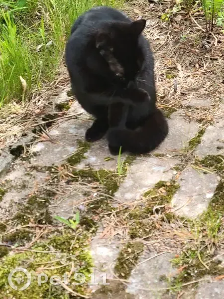 Окрас черный.Пуглив.По внешнему виду,животное было домашним.В руки не дается.Поэтому пол выянить не удается.Находится во дворе дома 7ул.Яблоневая,последние дня 2-3.