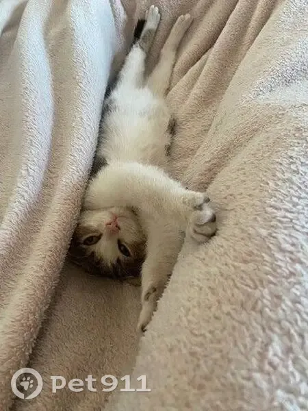 Пропал кот в районе 5 школы, откликается на кличку Гуф, Гуфа. Шерсть белая с коричневыми пятнами на них полосочки. В день пропажи на нём был фиолетовый ошейник