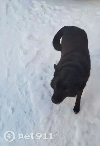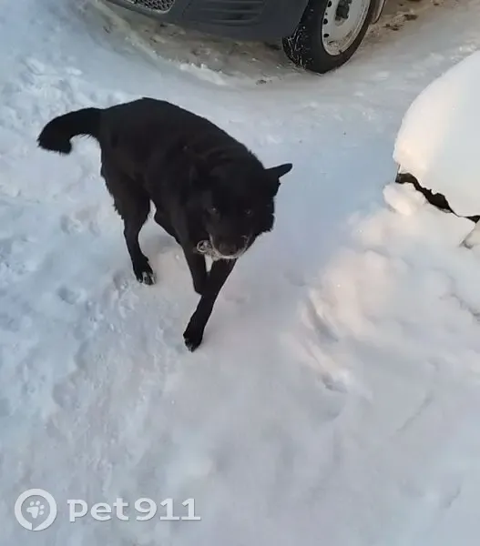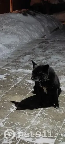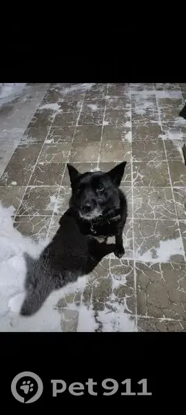Окрас черного цвета, на груди белое пятно. Очень добрый, умный, дружелюбный и совсем не агрессивный пёс. На шее был тканевый ошейник.