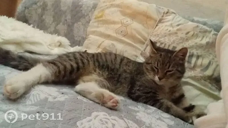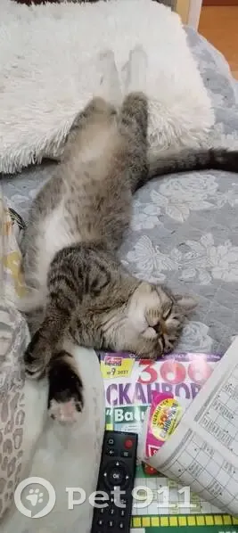 С виду домашний, чистенький. Поведение очень ласковое, в туалет пошел сразу на древесный наполнитель, активный. Грудка,живот и задние лапки белые, окрас черно-серый в полоску