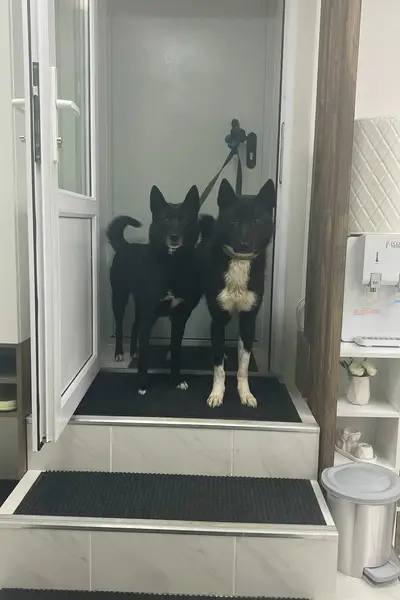 Настороженный парнишка, с собакой домашней очень игривый Окрас чёрный, темно-коричневый с белыми лапками, грудкой и кончиков хвоста Хвост спиралькой Найден в районе тц Парма, подбежал к подъезду коммунистической 48, ошейник оранжевый, поводок чёрный