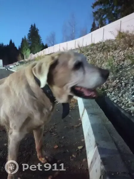 Нашли на Агате, раньше это лабрадор приходил на заправку, мне кажется хозяева живут как раз напротив, там дома строятся, ранее годами говорили что он от туда приходил....может на заправке Лукойл спросить... объявления были что лабрадор на заправке.....но это уже как пару тройку лет назад было..