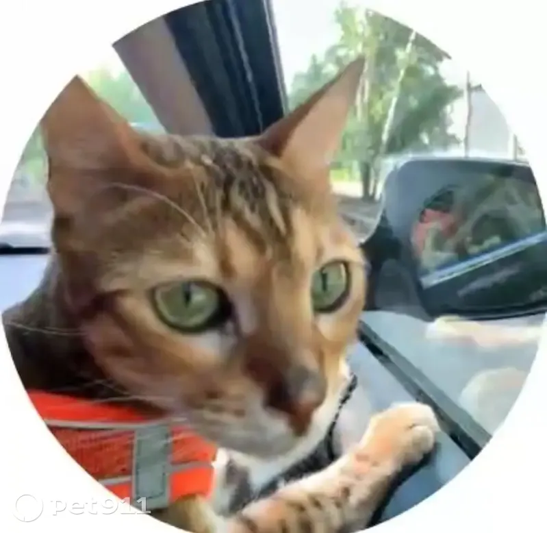 Рыжий леопард (порода Бенгал) . На даче, выскользнул из своего жилета.Местность не знает.На конуне перенес очень сильный стресс (он у нас на передержке). Очень пуглив, не подпускает к себе других.