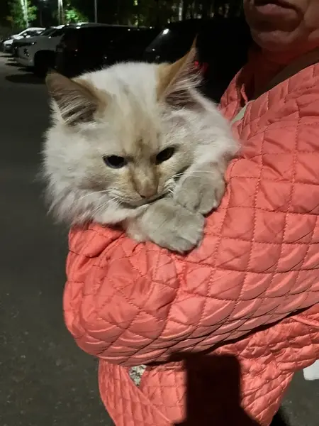 Кот длинношёрстный, не кастрированный, без ошейника, окрас бежевый с рыжими ушками, мордочкой, лапками и хвостом, голубые глаза. Выпрыгнул из окна 1 этажа.