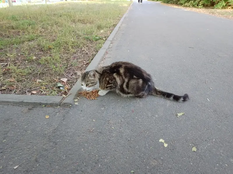 Кошка по кличке Мася, окрас тигристый, животик белый, пушистая, стериализованная. Красивая, необычная внешность. Так как живём месяц в этом районе, местность не знает.