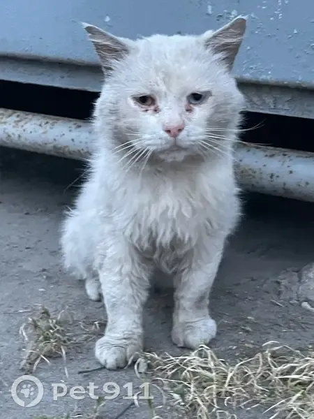 Найден белый кот с разными глазами в районе ул. Социалистическая. Явно давно на улице, на еду набросился, людей не боится но и в руки идет не сразу, после угощения пошел. Забрала к себе, но пришлось закрыть в отдельной комнате, так как две собаки и кошка дома. Очень ищу старых или новых хозяев.