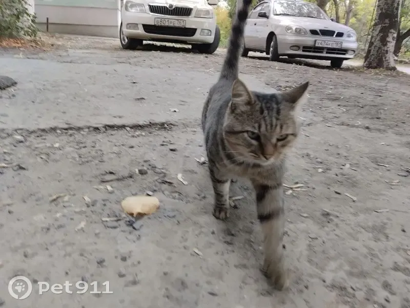 В 13:50, на углу многоэтажки улицы Инициативной 70, за мной увязался кот породы Европейская короткошёрстная. У него светло зелёные глазки и прищуреный взгляд. Очень мягкая ухоженная шерсть, ошейника нет. Видно ласковый, но пугливый, постоянно мяукал