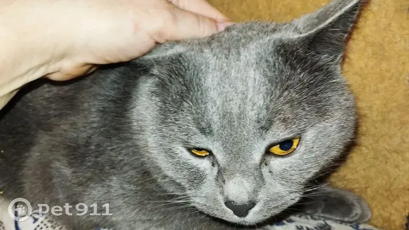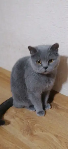 Кот британец, прямоухий, дымчатый, молодой, кастрированный, крупный. Сидел поздно вечером около овощного магазина. Рядом бегала стая собак. Взяла котика к себе домой.