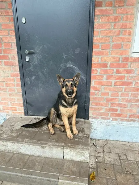 Напротив дома ул. Чехова 318 найдена овчарка. Собака с ошейником. С места не уходит. Просьба откликнуться.