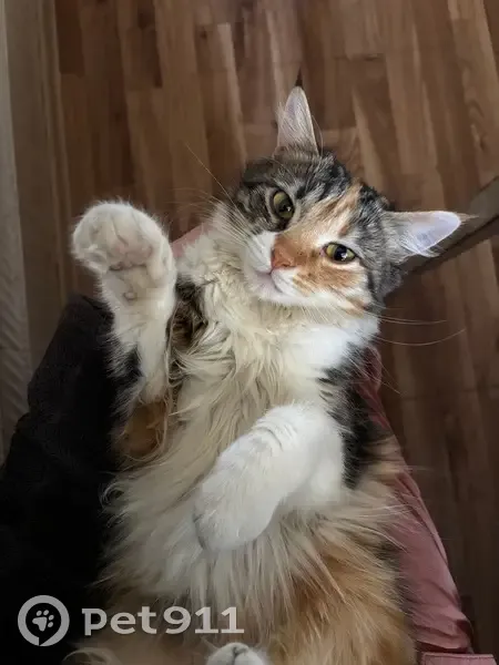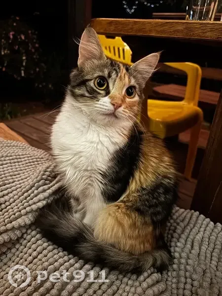 Кошка трехцветная. У нее достаточно пушистый цвет. На ушах небольшие кисточки. Кошка, вероятно, была испугана, когда чинили дверь она выскочила во двор, а далее за пределы двора. Но именно при каких обстоятельствах она потерялась - сказать сложно. Кошка иногда гуляла во дворе, он закрытый. По любому зову или любым другим знакам кошка возвращалась домой или давала о себе знать.
