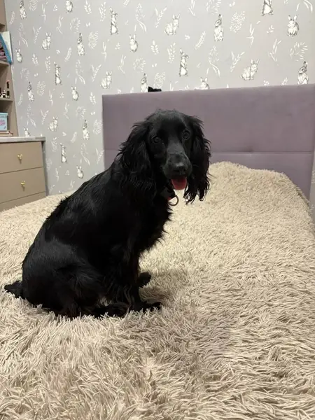 Порода: спаниель.Чёрный, грудка белая слегка. Вечером выпускаем его на прогулку, сам всегда приходит, никогда далеко не убегал от нашего дома, по нашему району гулял. А 05.02.2026 в 18:15 как выбежал, так и не вернулся. Помогите, пожалуйста, найти.