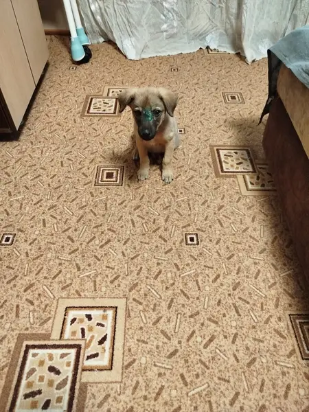 Щенок шесть месяцев. Желторыжий с чёрными подпалинами. Хвост плёткой. Чёрная морда. Зелёный ошейник с карабином. Потерялся между кладбищем и сыпучкой недалеко от трассы. Возможно напуган собаками.