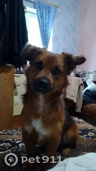 Коричневый , на грудке белое пятно , от шеи к груди, пушистый хвост, кривые зубки, коричневый ошейник. Очень любопытный. Знает команды, сидеть, дай лапу, служить. Возраст 3 года. Вес 12 кг.