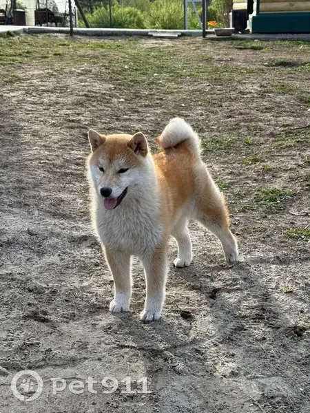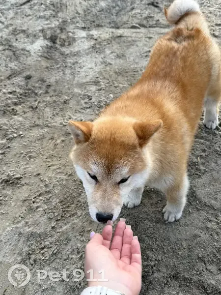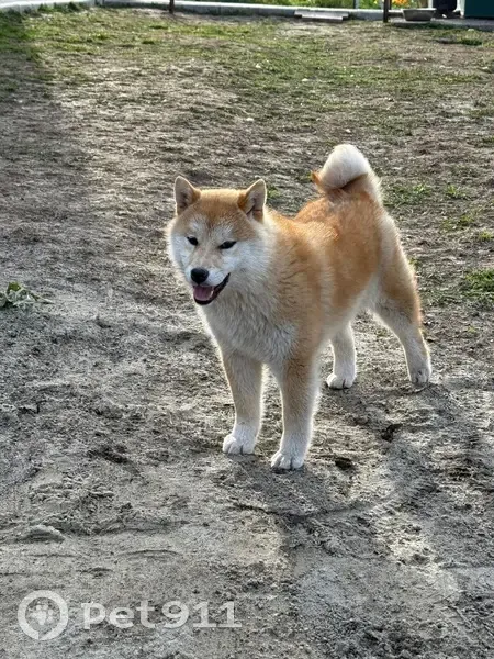 Щенок сиба-ину, 6 месяцев, пушистая, похожа на лису, некрупная. Пугливая, к людям может не пойти, контактирует с собаками. Очень активная. Сбежала через щель в заборе