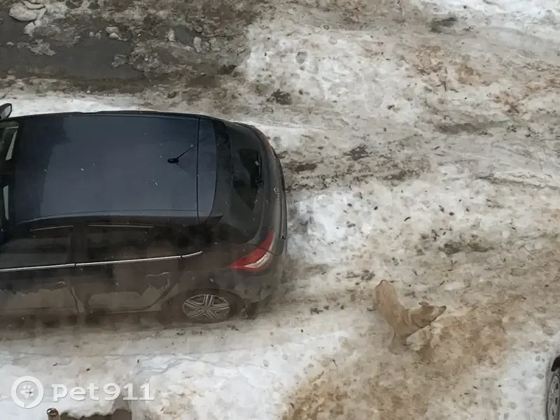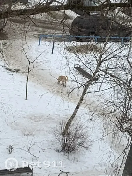 Собака мальчик, с ошейником. Бегал по двору, обнюхивал подъезды. Искал. Дворняга. Песочного цвета. Видела во дворе с 9.45 до 11.00. Он то убегает, то возвращается. Сейчас куда-то пропал. Жалко. Явно потерялся. Более четкого фото нет. Мой телефон 89106544835. Ольга