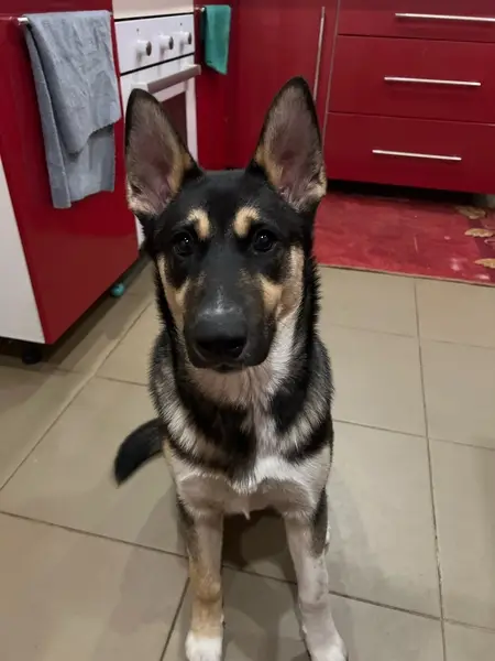 Овчарка, девочка, окрас чёрный с коричневыми бровками и грудкой, добрая, ухоженная, общительная, воспитанная, обучена командам. По поведению похоже жила в квартире.