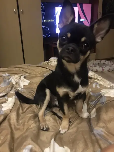 Найден молодой пес, который похож на чихуа-хуа, чёрный, коричневый ошейник.