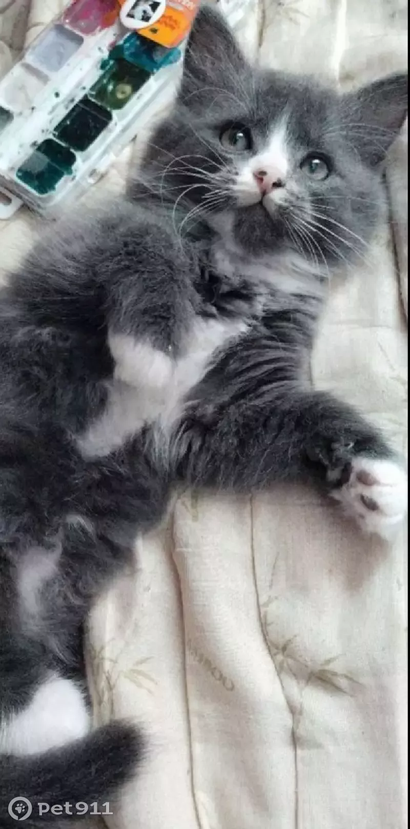 Кличка: Пирожок. Серый пушистый котенок в белых носочках. На пузике тоже белое пятнышко. На вид 3 месяца. Убежал из квартиры(живём на 3 этаже), пожалуйста помогите найти нашего пирожка.