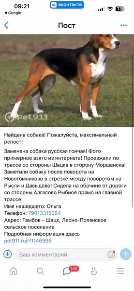Эстонская гончая, кличка Амур. Добрый, потерялся во время прогулку в районе д Новосельцево тамбовская область, на шее ошейник.