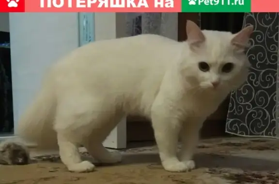 Кот белый, глаза небесно голубые. Очень напуган, не подпускает к себе. Давно потерялся или выбросили. Подкармливаем, стал немного ласковее, но всё равно боится шума. Может кто поможет его определить в питомник или хорошие руки. Жалко животное, видно, что рос не на улице, боится всего.