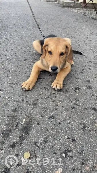 Щенок 4 месяца, на шее ошейник коричневый с серебристыми клепками, побежал за взрослой собакой, оба не вернулись