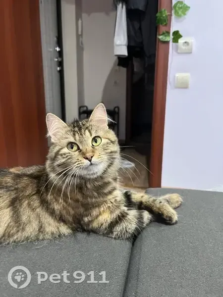 Камышовый окрас, левая лапка сзади белая. Выскочил поводок из рук и ударился об землю, кошка испугалась и побежала. Спустя 2 часа поиска, под машиной нашли шлейку и поводок, самой кошки не было