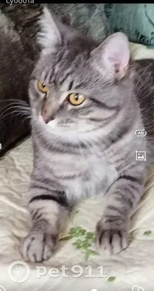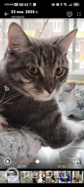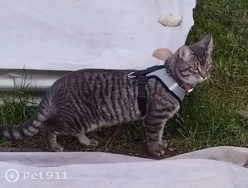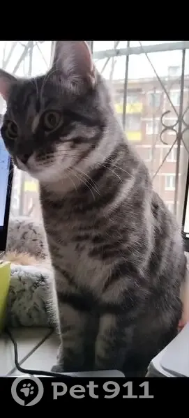 07.07.2025 ушел из дома и не вернулся кот КЕНТ ПОМОГИТЕ НАЙТИ ДОМАШНЕГО ЛЮБИМЦА Будем благодарны за любую информацию! Вернувшему ВОЗНАГРАЖДЕНИЕ ОКРАСКА: тёмно-серый с чёрными полосками, с белым подбородком и животиком ПОЛ: мальчик ГЛАЗА:жёлтые ИМЯ: Кент (Кентюша) ВОЗРАСТ: 1год ХАРАКТЕР: ласковый, осторожный (пугливый), игривый. ПРИМЕТЫ: короткошёрстный, крупный, с серым ошейником (на фото другой ошейник), негромкий голос, чёрное пятнышко на носу.