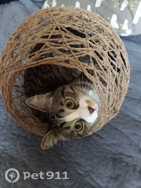 Вышел из дома погулять и не вернулся окрас: серый в черную полоску, личико, грудка, животик, лапки белые Есть пятнышко коричневого цвета возле носа, беспородный, кончик хвоста поломан. Цвет глаз: зелёно-желтые
