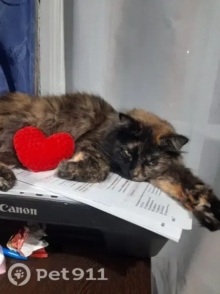 Черепаховой окраски, носик цветами ровно напополам идет. Подушечки на лапках бежево-чёрные. Пушистая очень, хвост пушистый. Ласковая , но может побояться при первой встрече
