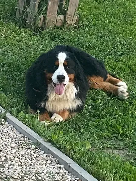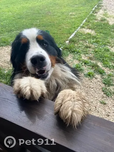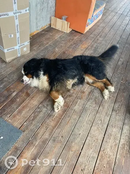 Порода бернский зиненхунд, мальчик, красный широкий ошейник. Спина черная, грудь и живот белые, морда частично белая частично черная, бровки коричневые. Лапы бело-коричневые ️ 89296522850 Евгения