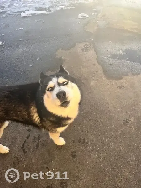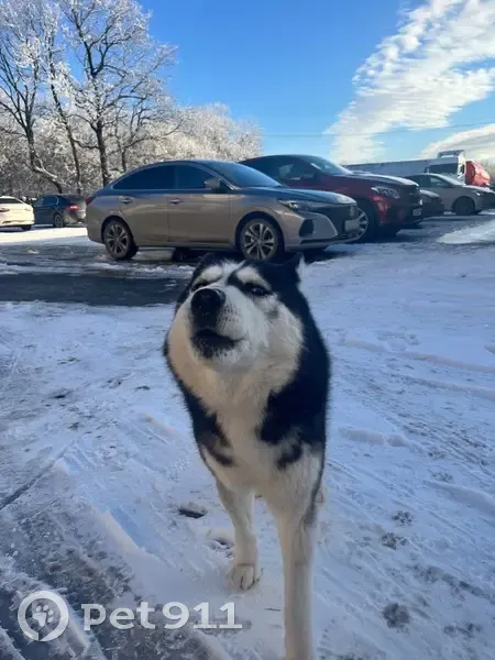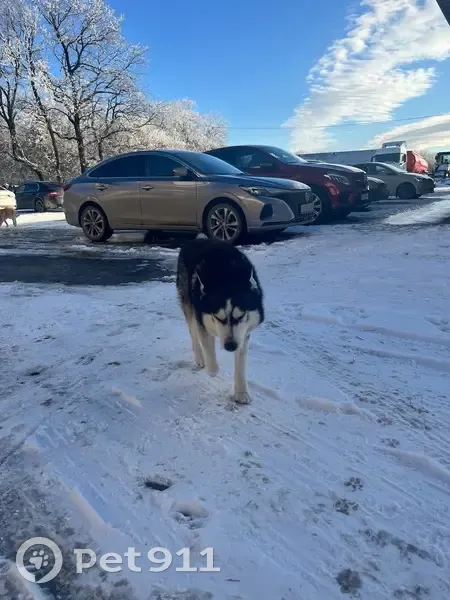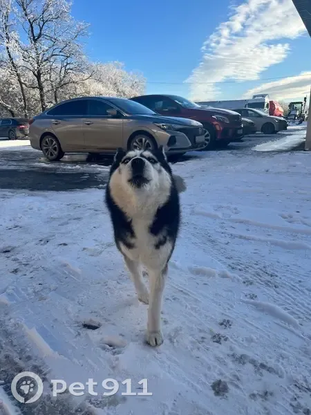 Черный хаски , вроде чисто кровный мальчик без ошейника , может чей-то , глазки как у хаски голубой цвет примерно