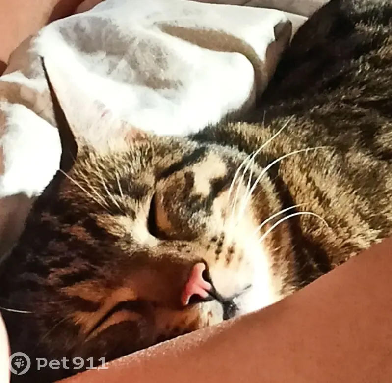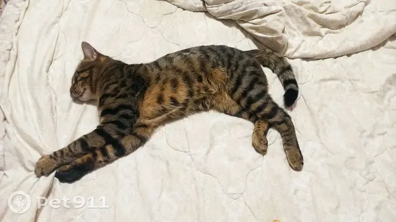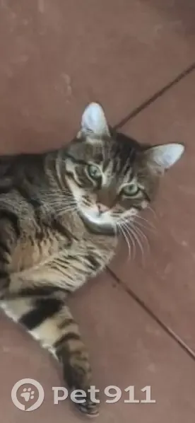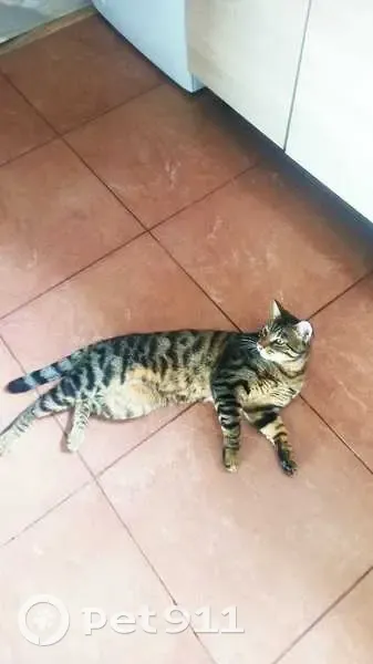 Полосатик, серый с коричневым, похож на бенгала, весёлый, сбрито над глазками, лечили инфекцию, убежал в ночь, в темноту, обычно мог побегать рядом с домом, и всегда возвращался домой, но на утро его не было, и нет до сих пор, всех соседей опросили, никто не видел ждём и ищем