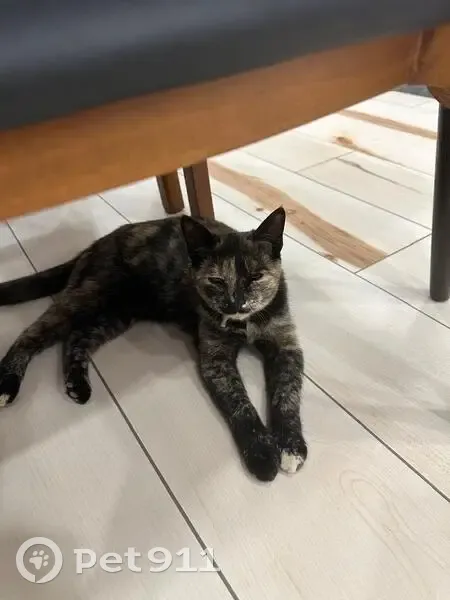 Окрас черепаховый, желтый ошейник с адресником (мог открутиться)