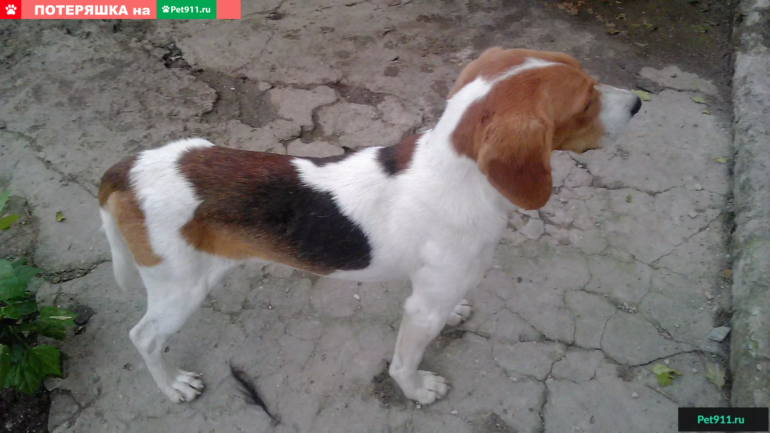Гончая кобель, ноги длинные, за левым ухом на шее два пятна, одно за другим, маленькое и большое, на животе в паху крап. Исхудал, люди говорят, был в ошейнике, найден без него. Спокойный, дружелюбный