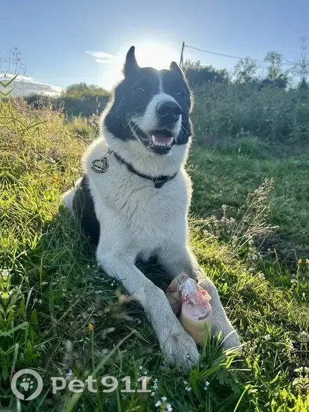 Кобель Лайки, зовут Вулкан. Убежал без шлейки. Черно-белый окрас.