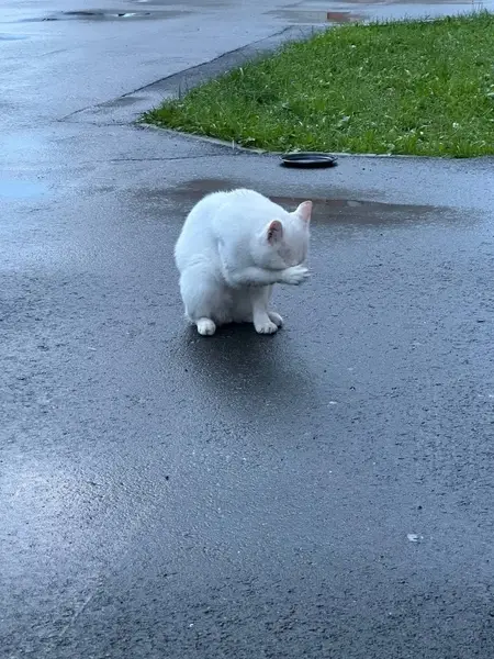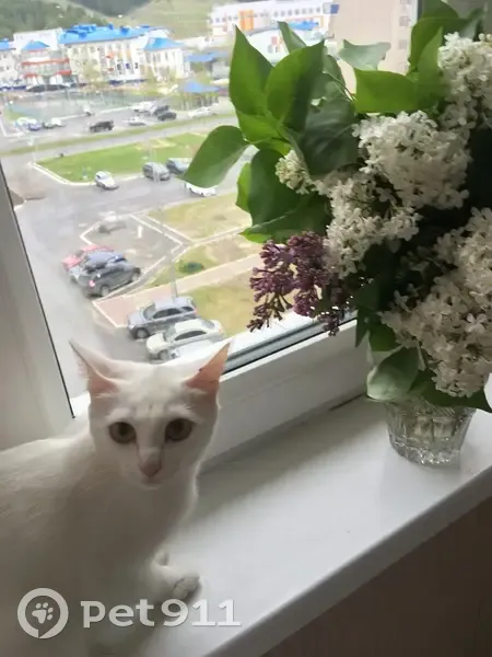 Проездом через Тобольск на парковке кафе Шарк был найден напуганный котёнок (девочка белого окраса, чистая, ухоженная). Котёнок метался между грузовыми автомобилями и кричал, оставить его мы не смогли. Поиск хозяев в гостинице и кафе результатов не дал.