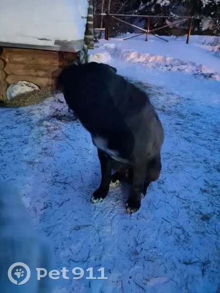 Пёс приходит на территорию рыбопитомника Тобольский. Без ошейника, не агрессивный, не истощение. Грудка и кончики лапок белые.