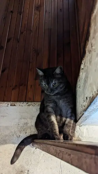 Найден кот (или кошка, не разглядели) в закрытом крыле подъезда, не представляем, как сюда попал. Соседи не знают про него ничего. Кот взрослый, похож на британца. Окрас темно-серый со светлым подшерстком, глаза желтые. Явно домашний, чистый, ухоженный. Очень страдает, не ест, почти не двигается.