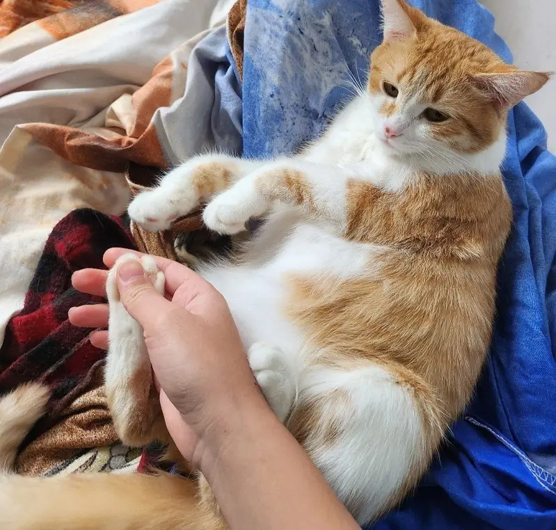 Найден кот, кастрированный, чистый, ласковый. Рыжий с белым, на носу не большое чёрное пятно. Найден в подъезде