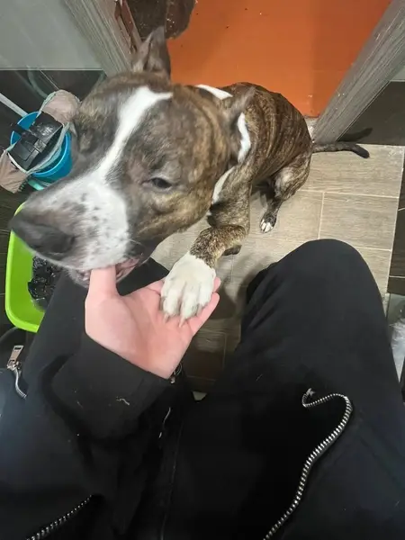 Внешне похож на питбуля, тигровый окрас, когти стриженные, сам чистенький, без ошейника. Добрый мальчишка, знает команды. Нашла женщин возле банка ВТБ на Мира. Смогла поймать возле большого магнита на площади в центральном районе. Бегал и искал глазками хозяина. Лапы в крови, скорее всего закусился с бродячими собаками. Сейчас находится во дворе в голубятнике, чтобы не убежал. Забрать к себе нет возможности. Старый или новый хозяин найдись!