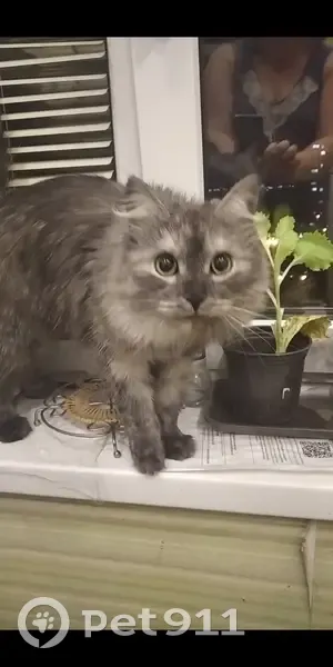 Серый окрас, пушистая, дружелюбная, легко идет на контакт.