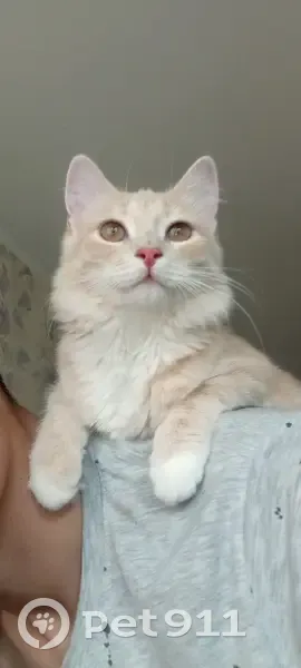 Девочка, возраст около года Цвет светло персиковый наверное, с белым брюхом, ну практически весь низ белый Порода смесь шиншиллы, пушистая вышла Вознаграждение 5.000 рублей. Гуляли с поводком, по какой-то прчиине кошка испугалась, вырвалась с поаодка и убежала возле 4 подъезда(Тольятти, Автозаводский район, бульвар Курчатова, д1)